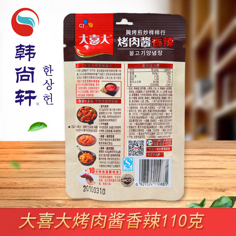Шайджи Дакси Барбекю, жареный жареный жареный гель -соус 110G*5 сумка в корейском стиле Семейный барбекю соус барбекю