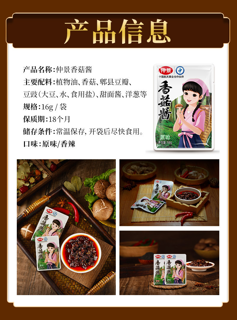 Zhongjing Shiitake Mushroom Saucle 16G*45 сумки грибной соус Сверки с лапшой Смешанная лапша под рисовым соусом острый оригинальный соус быстрого питания