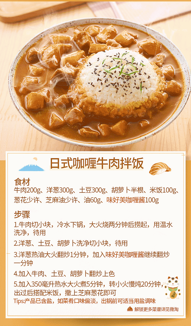 Weixiang Beauty Curry Sauce 230G*3 спины продуктов быстрого питания японской карри в стиле карри.