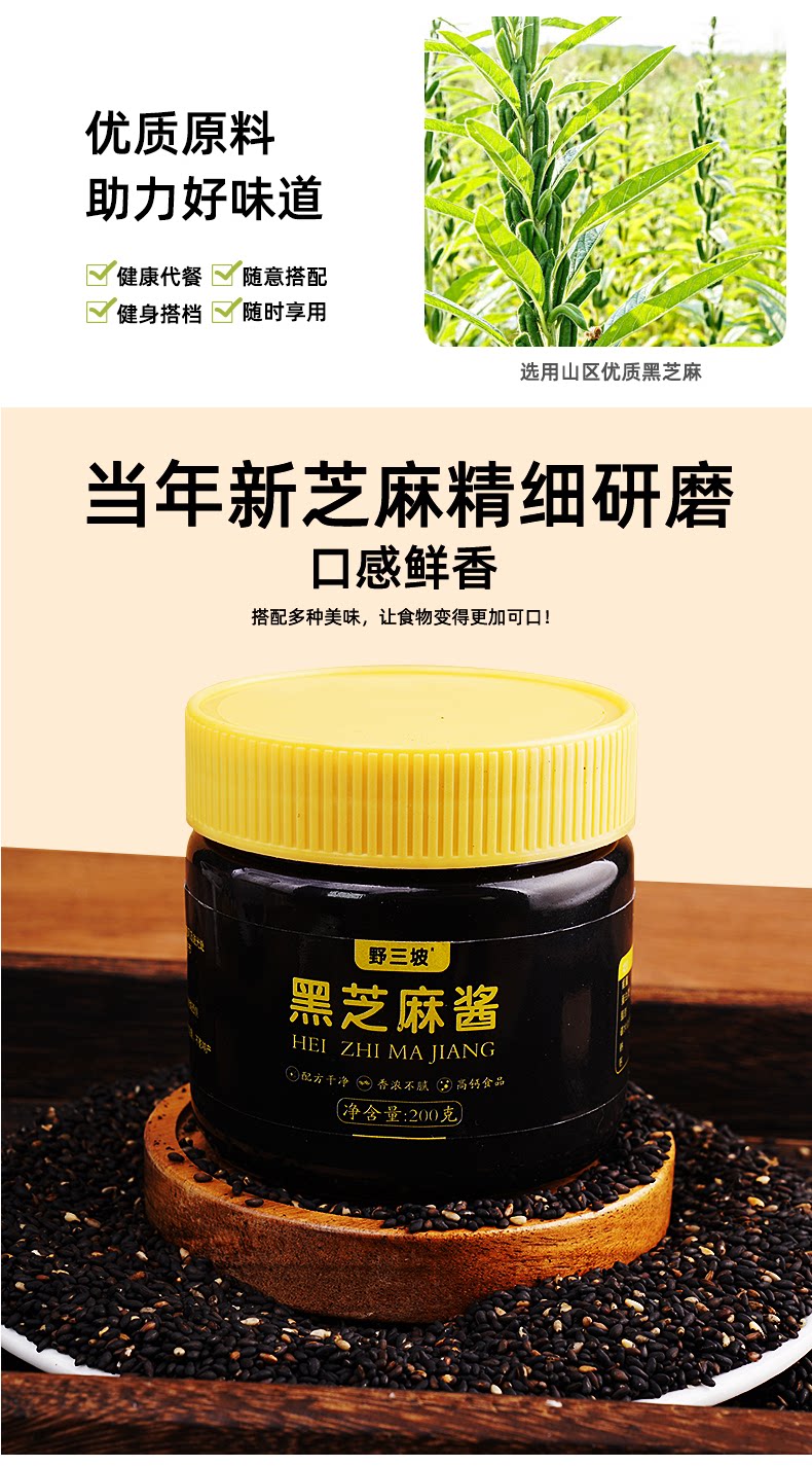 野三坡 Pure Black Sesame Paste Paste Запеченная имбирь с низкой пекарней и ту же черная кунжутная паста приправы распространять хлеб завтрак