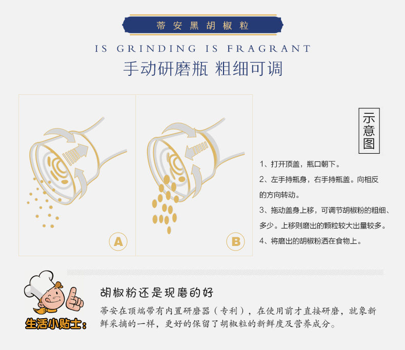 Итальянский импортный туансанский черный перец с гранулами измельчителя Zhengzong Beef Steak Coldrigeration 45 г/бутылка