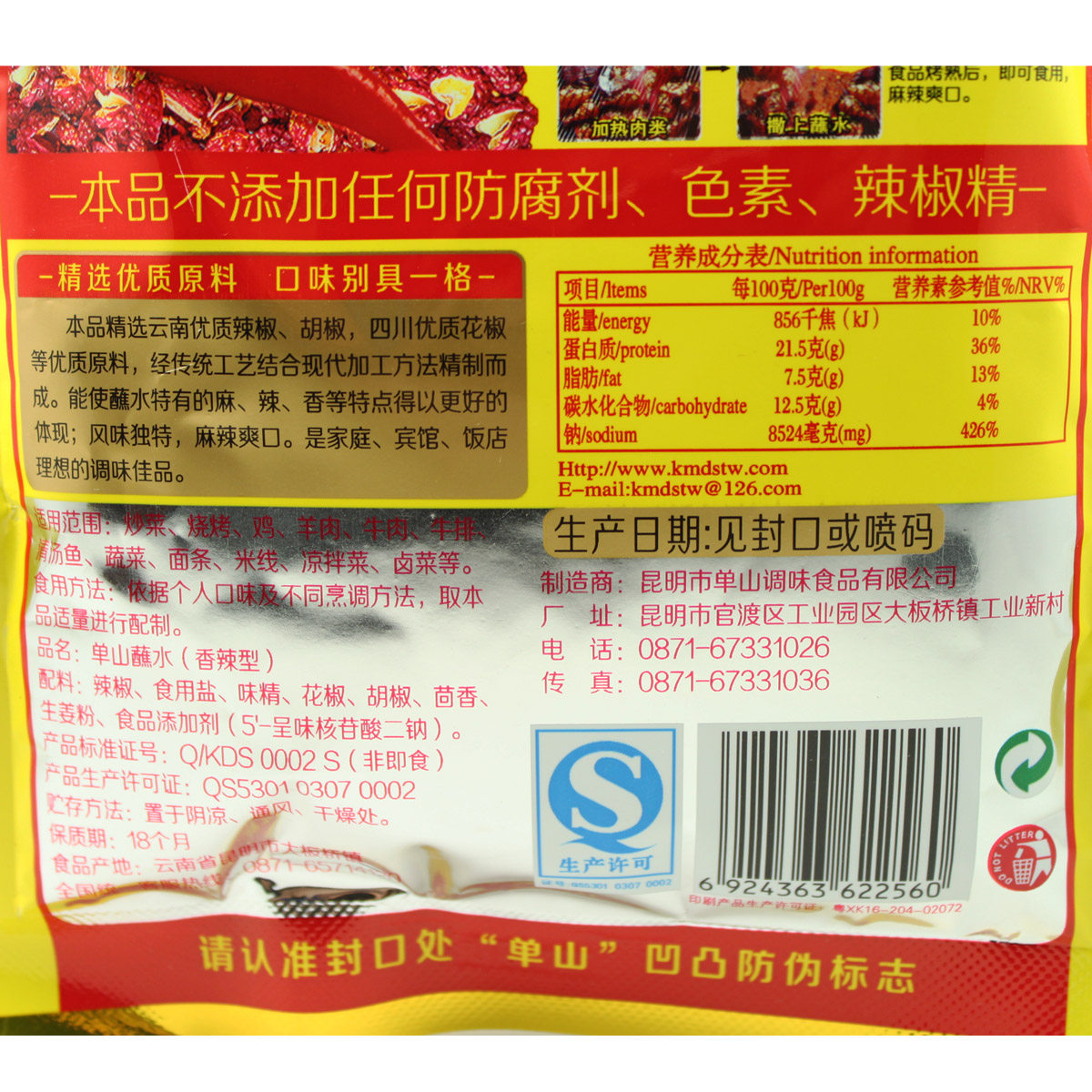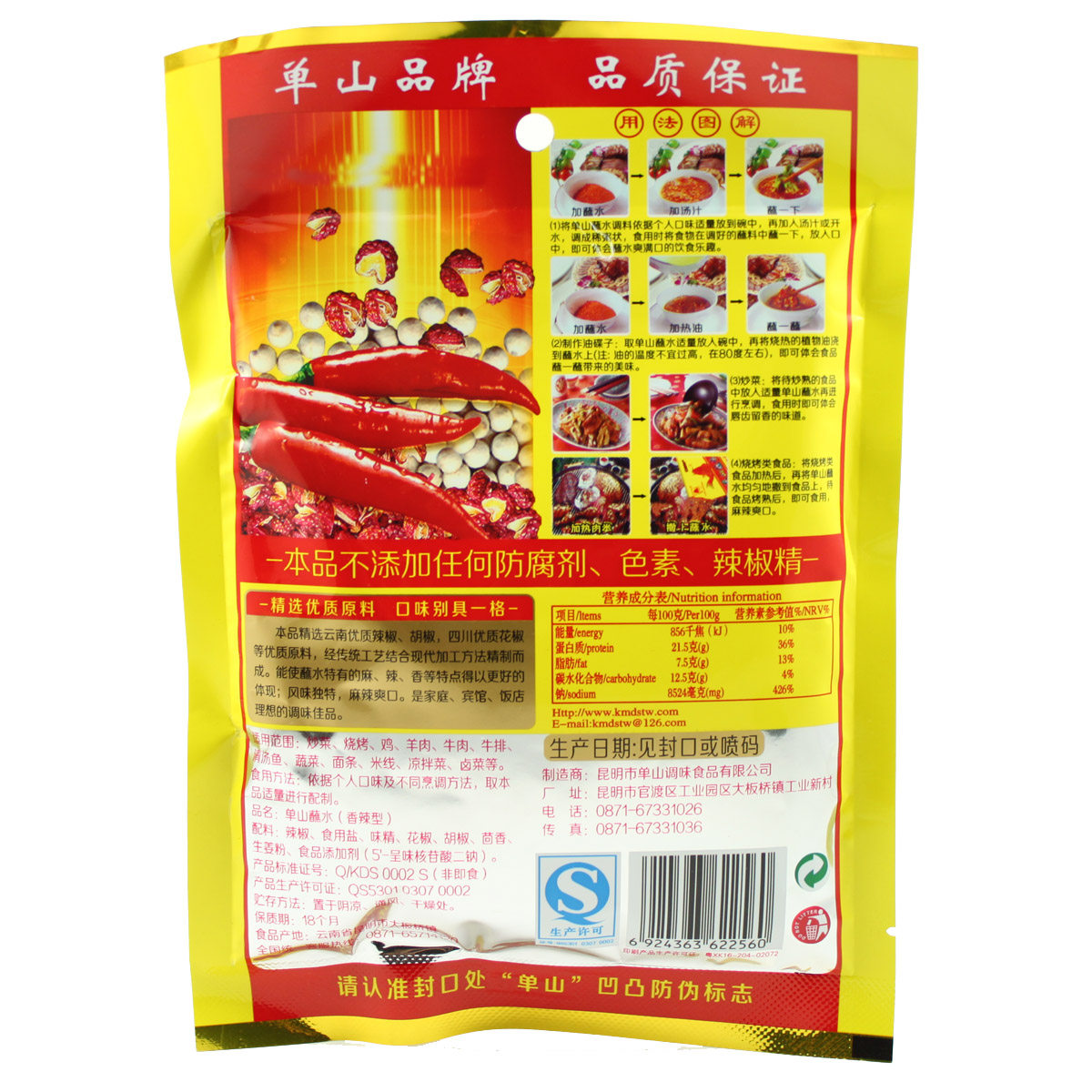 (5 мешков бесплатной доставки) Юньнанская гора гора Шан, окунутая в воде 200 граммов приправы для барбекю перца