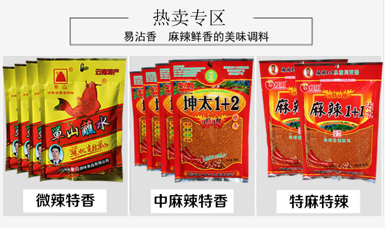 Юньнань Чили Перец Лицо Кун слишком острый 1+2 аромат, окунутый в воде, Калифорния Сычуань Огня Огня приправляя приправа для жарки.