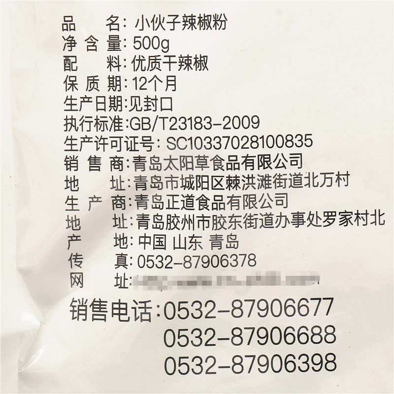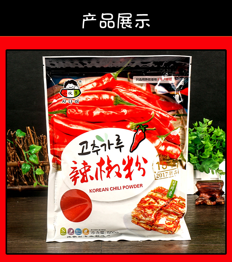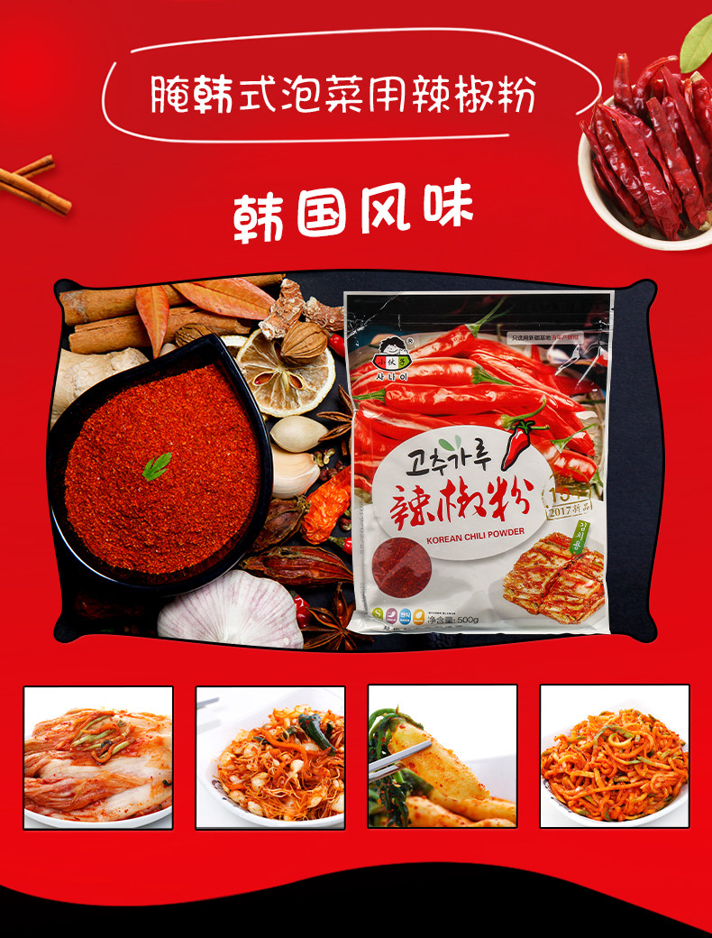小伙子 Грубая порошок чили 500 г кимчи острая капуста специальная холодная посуда корейские барбекю сухожили сухой сухофликту