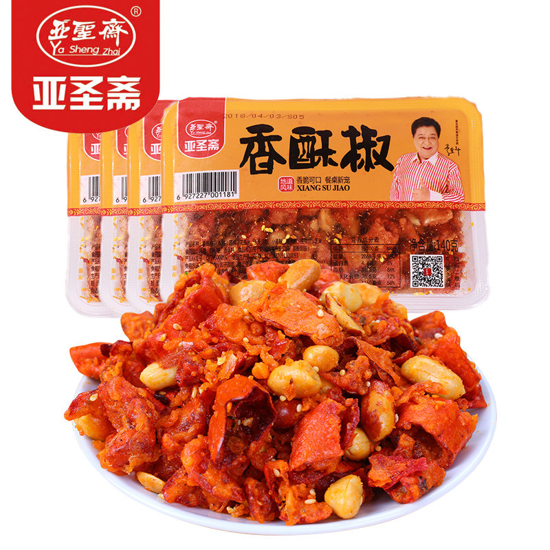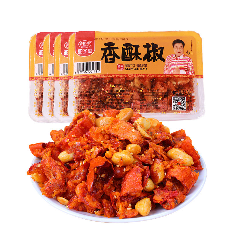 亚圣斋 Хрустящий перец арахис, острый хрустящий 140 г*4 коробки с жареным перцем хрустящий хрустящий хрустящий перец перец