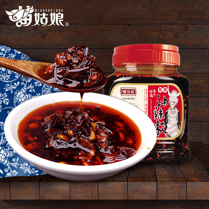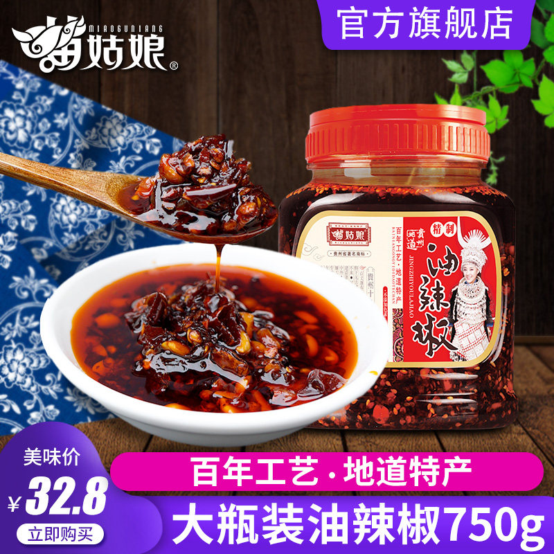 苗姑娘 Гийчжоу специальное масло чили чили 750G Масло острое острый острая красное масло соус чили прохладное отбеливание. Смешание масло чили
