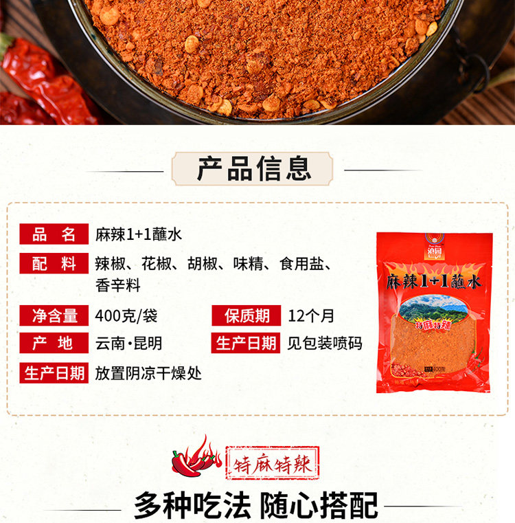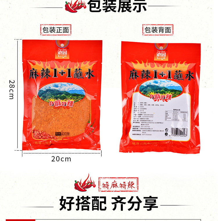 Специальные продукты Yunnan Special 1+1 Dip Water Barbecue Chili Noodse 400G*2 мешки с пряной водой с водой питье