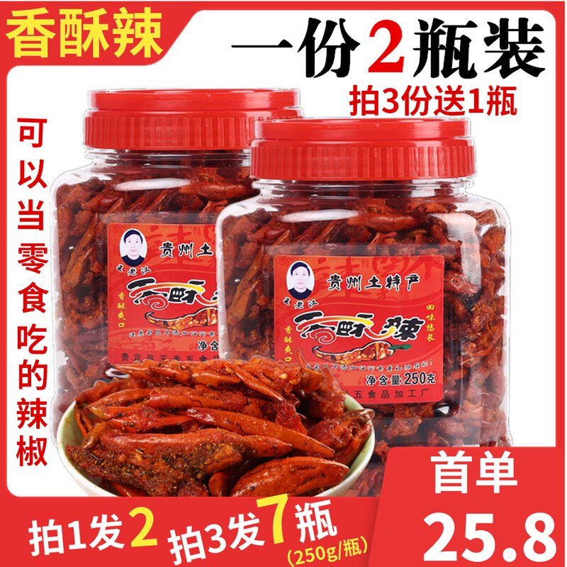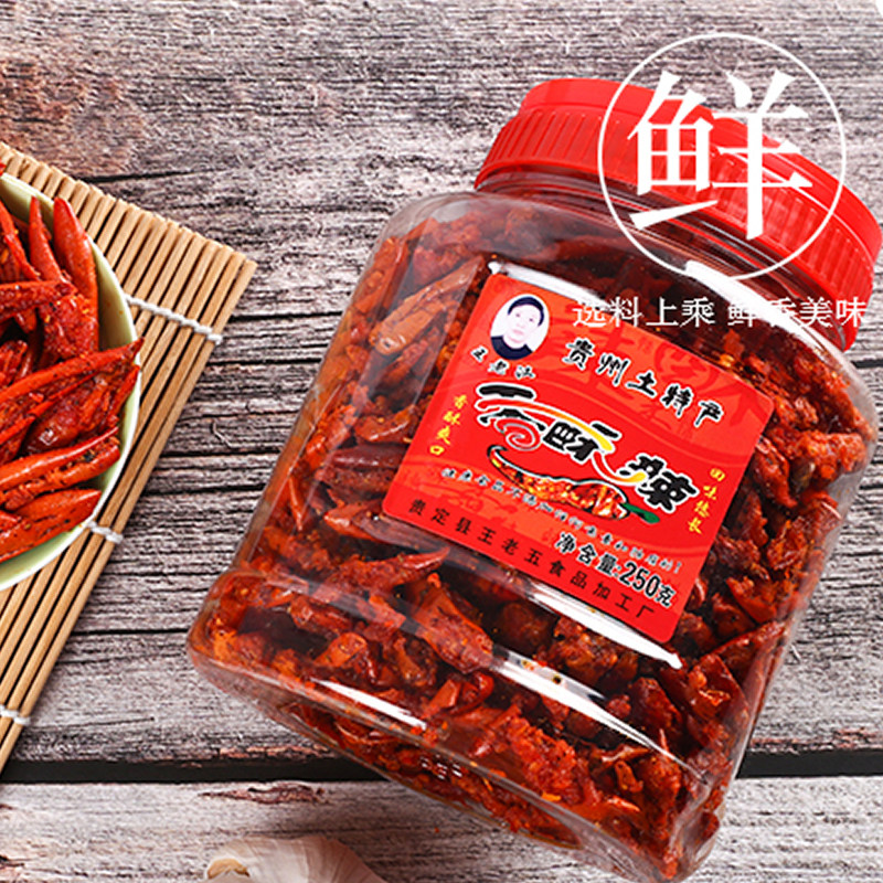 Специальность Guizhou Wang Laohan Sweet и Spicy Somania 250g*2 бутылки жареных закусочных чили, острый хрустящий перец