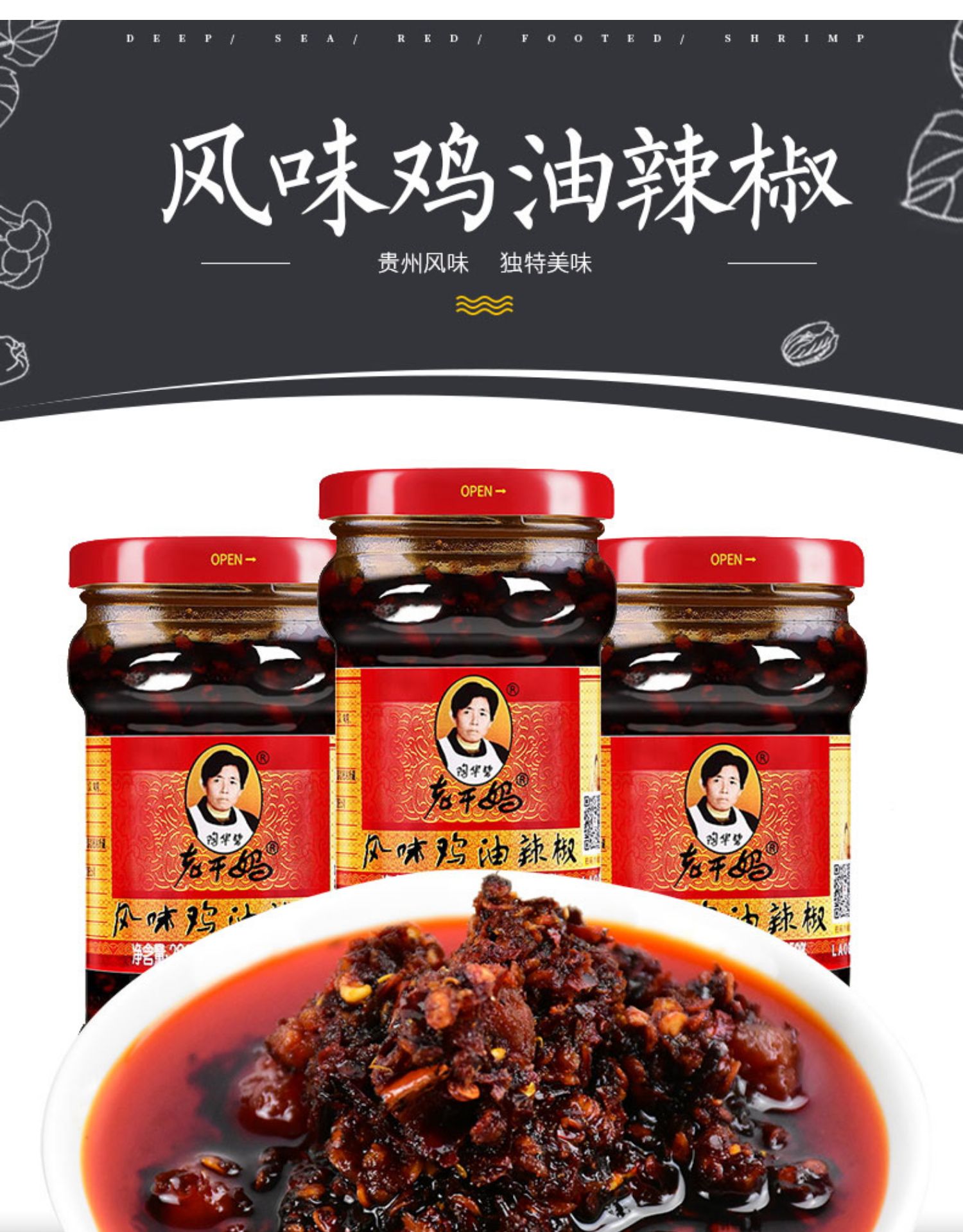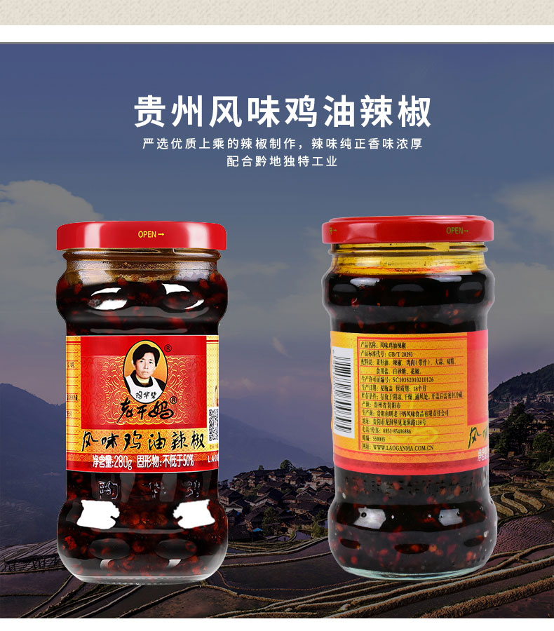 Лаоганмский вкус куриный масла перец 280g*2 бутылка герпхоу специально острая куриная аромат соус чили, поданный
