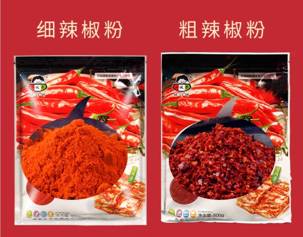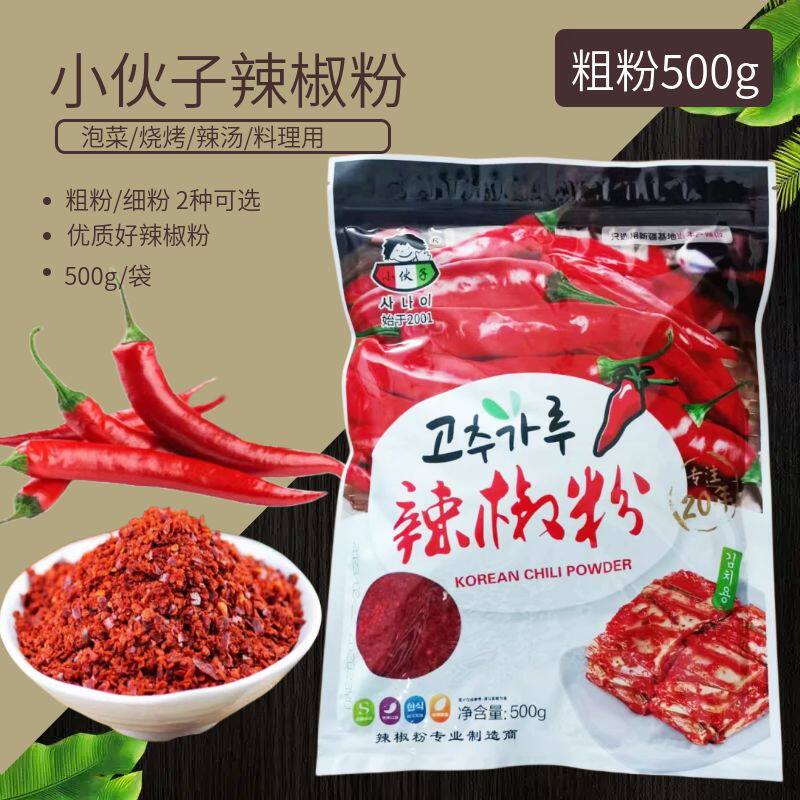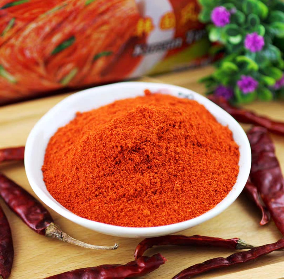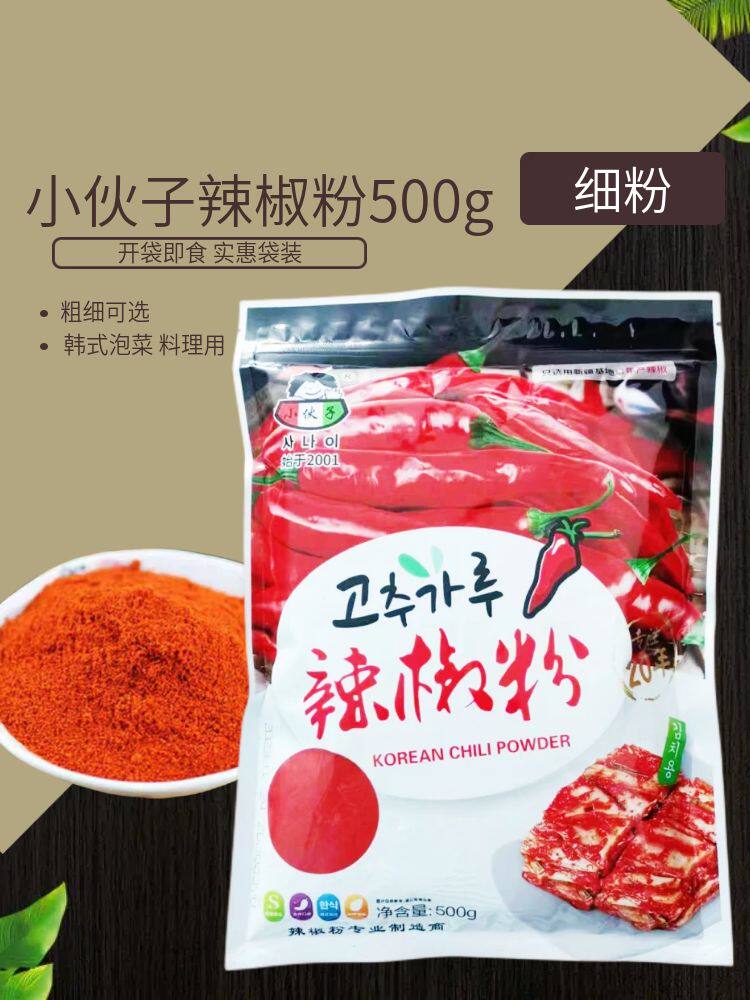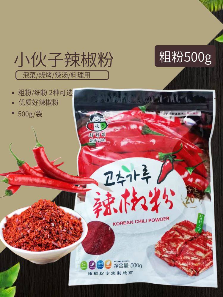 Молодой парень чили порошок 500 г корейская пряная капуста kimchi Специальная средняя грубая перцем порошок на гриле на гриле.