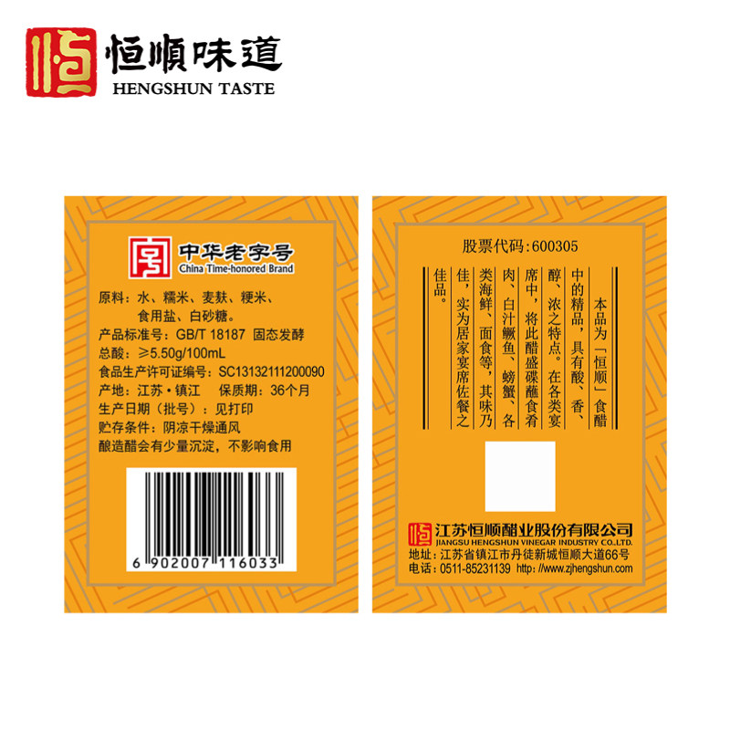 恒顺 Гостер уксус 500 мл уксусного уксуса Чжэньцзян Специальности, окунутые в приготовлении и приправах чистого зерна пивоварения