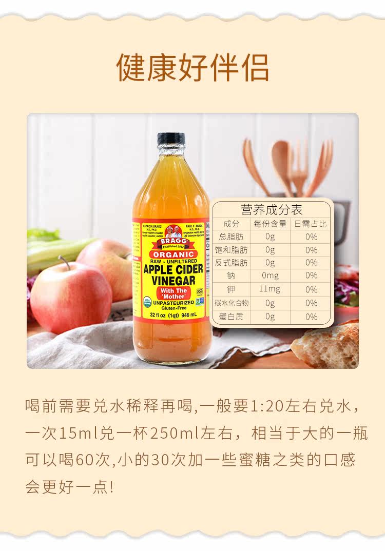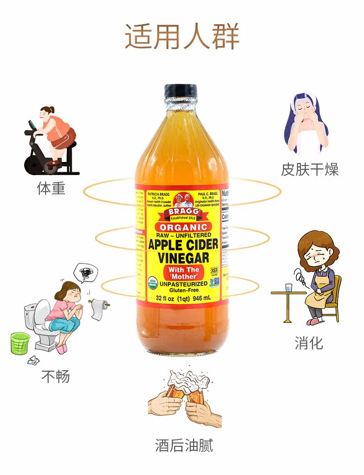 БЕСПЛАТНАЯ ДОСТАВКА США Импортировав Брэгг Органический яблочный уксус 946ML