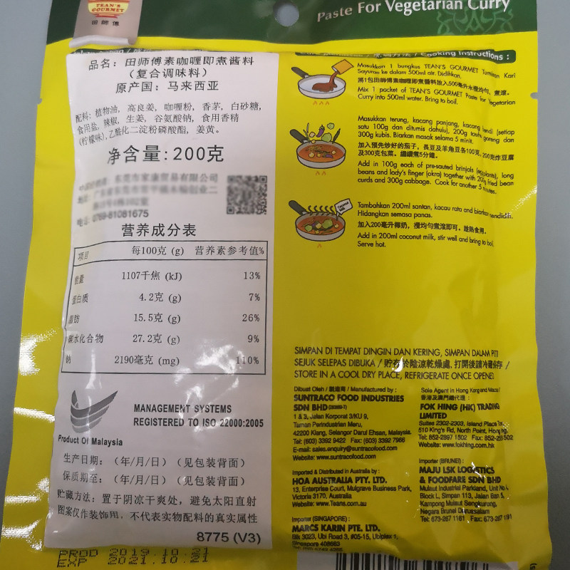 Мастер Tian Mona Curry 200g Малайзия импортированная аромат карри горячее горшок нижние ингредиенты, 食 соус бибимбап оригинал приправы