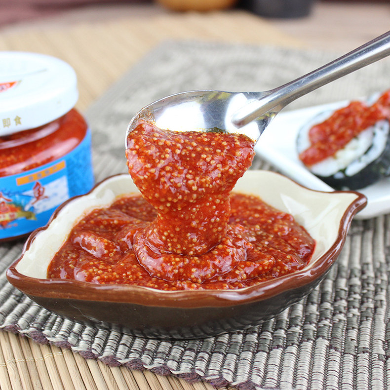 Ингредиенты: свежая морская икра, томатный соус, лук, сахар, соль, уксус, рафинированное растительное масло, специи, красный перец, грушевая кислота и т. Д.