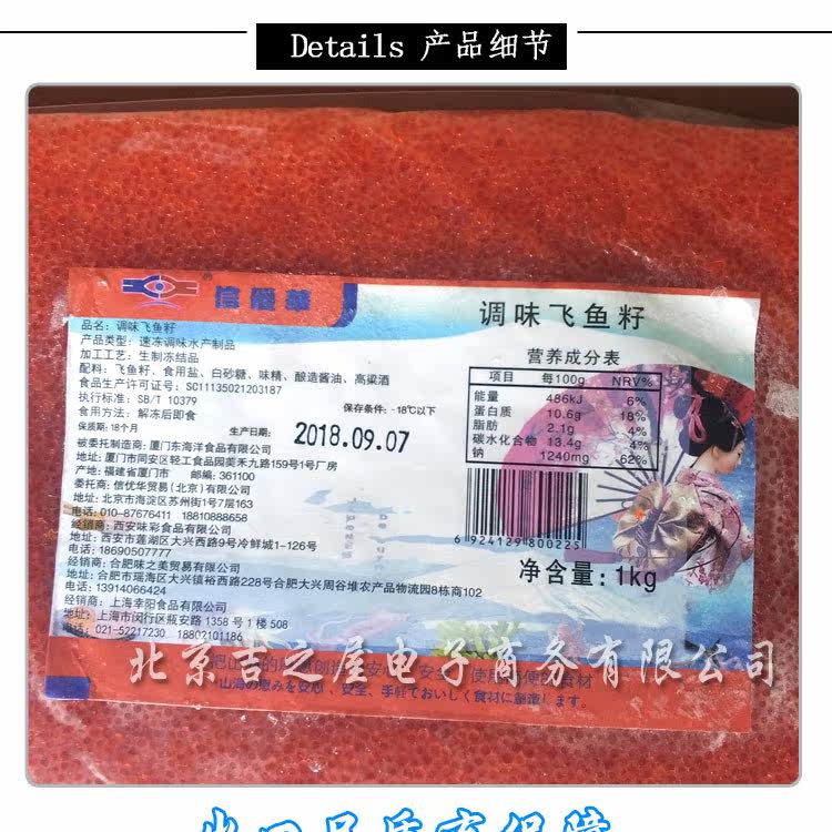 Приправа летающая рыба Семя 1 кг японских суши -материалов Красная икра Сашими Партнер рыбаков Грэйм Грейм