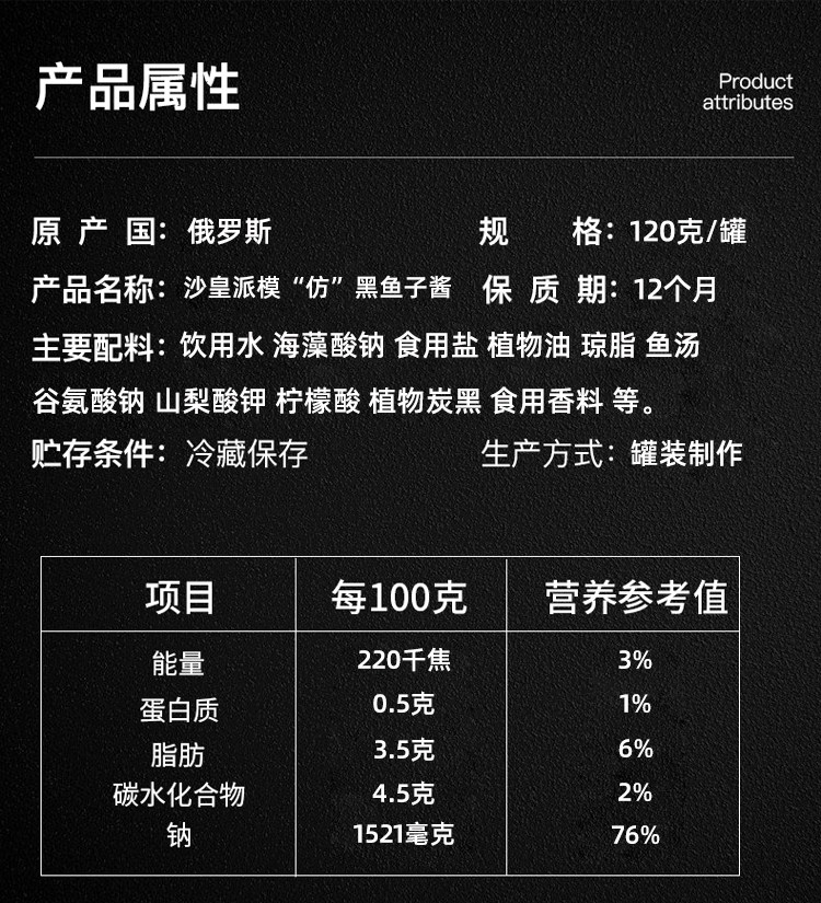| Вкус: | Жестяная коробка, 120 грамм, Жестяная коробка, 120 грамм, Железная коробка красная икра+железная коробка черная икра, Железная коробка черная икра 2 может, Железная коробка красная икра 2 может, Бутылка, 105 грамм, Бутылка, 105 грамм, Стеклянная бутылка черная икра+стеклянная бутылка красная икра, 2 бутылки из стеклянной бутылки черной кавиа, 2 бутылки из стеклянной бутылки красной икры, Последняя дата даты |