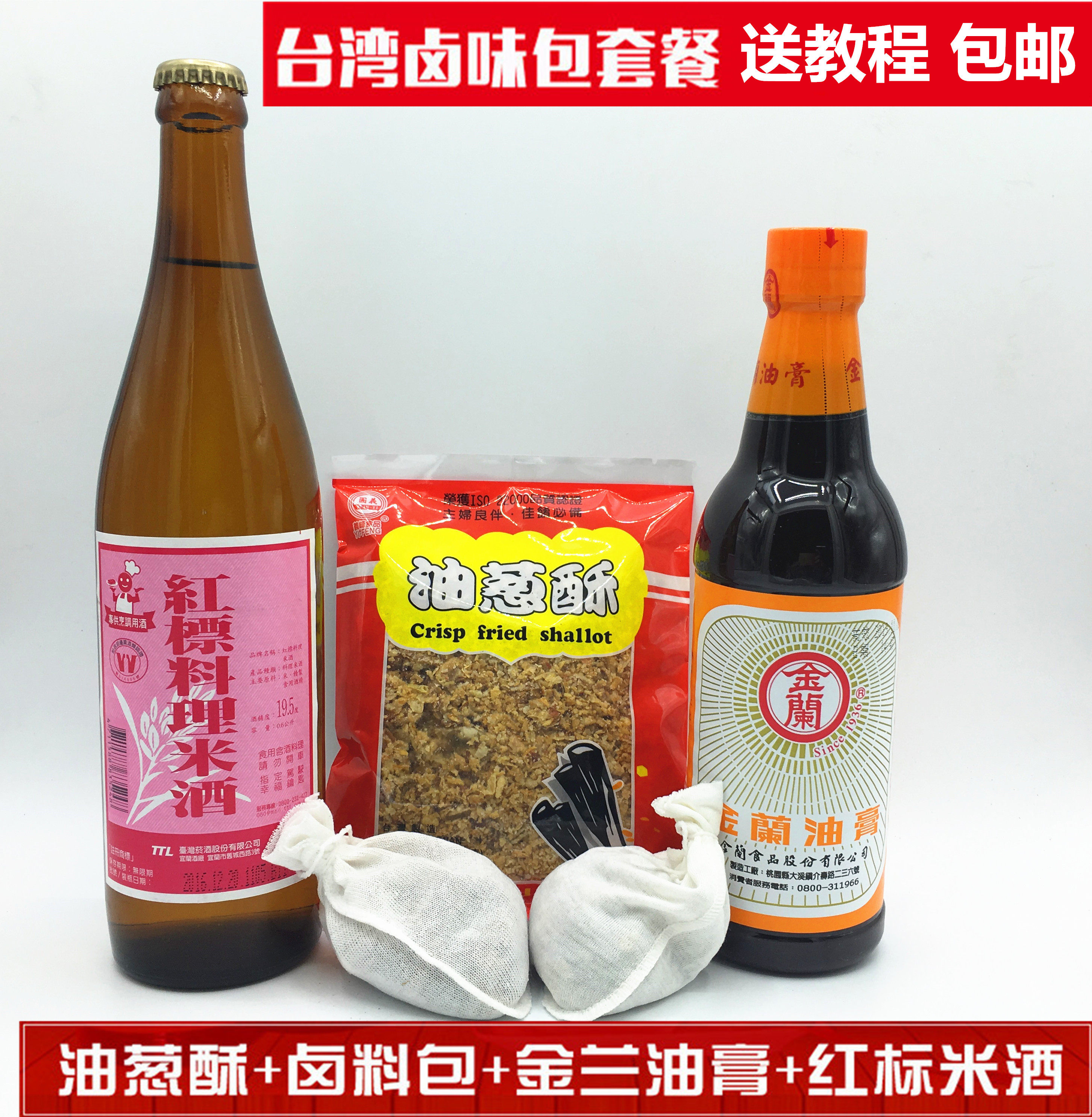 Тайвань импортированные тушеной блюда из свиного риса Bao Jinlan Cream, соевый соус, красно -ароматизированный рисовый вино праведное пик зеленый лук хрустящий