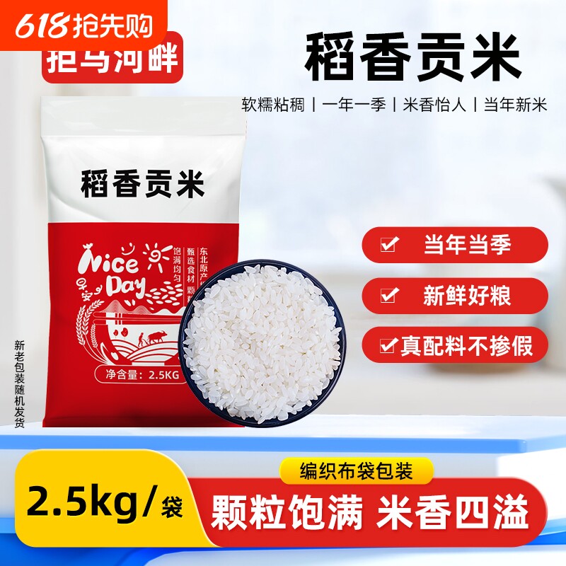 Северо -восточный рис Новый рис 5 кот из жемчужного риса не -пятнистые фунты рисового цветочного ароматного мягкого мягкого клейкого вакуумного вакуума первого класса рис ладан