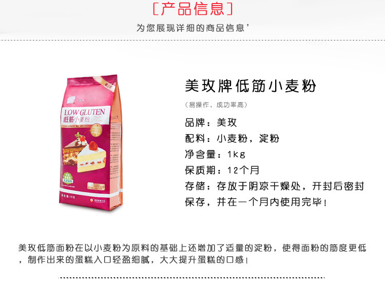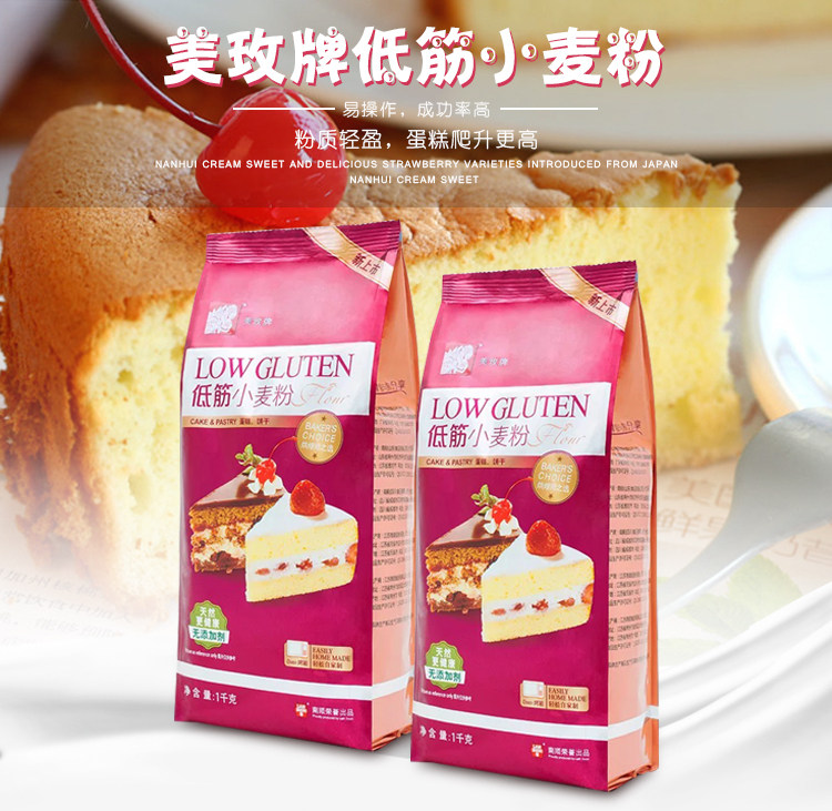 美玫 Бренд с низким содержанием пшеничной муки пшеница порошок с низким содержанием глютена с низким порошковым бисквитом яиц пицца пицца выпекание сырье 1 кг