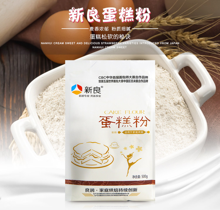 Выпекание сырой сырой, новая низко -глютенная мука с высоким содержанием качества пшеничного порошка для пирога с пирожным пирожным порошок с низким содержанием глютена оригинальный 500 г*2 сумки