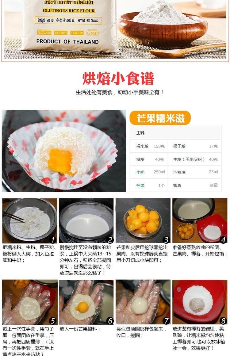Тайская вода матери вода мельница клейкая рисовая мука 500 г мешок установлена дома коммерческий лунный торт домашний тыквенный пирог