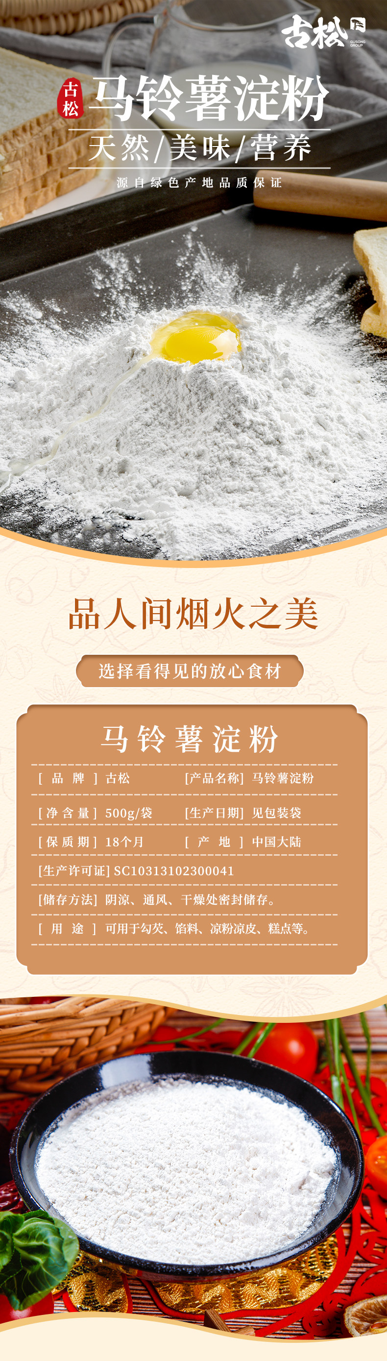 古松 Картофельный крахмал 500G*2 крахмал Tudou, разрыхлитель, сырой порошок, сырой порошок, слишком белый порошок