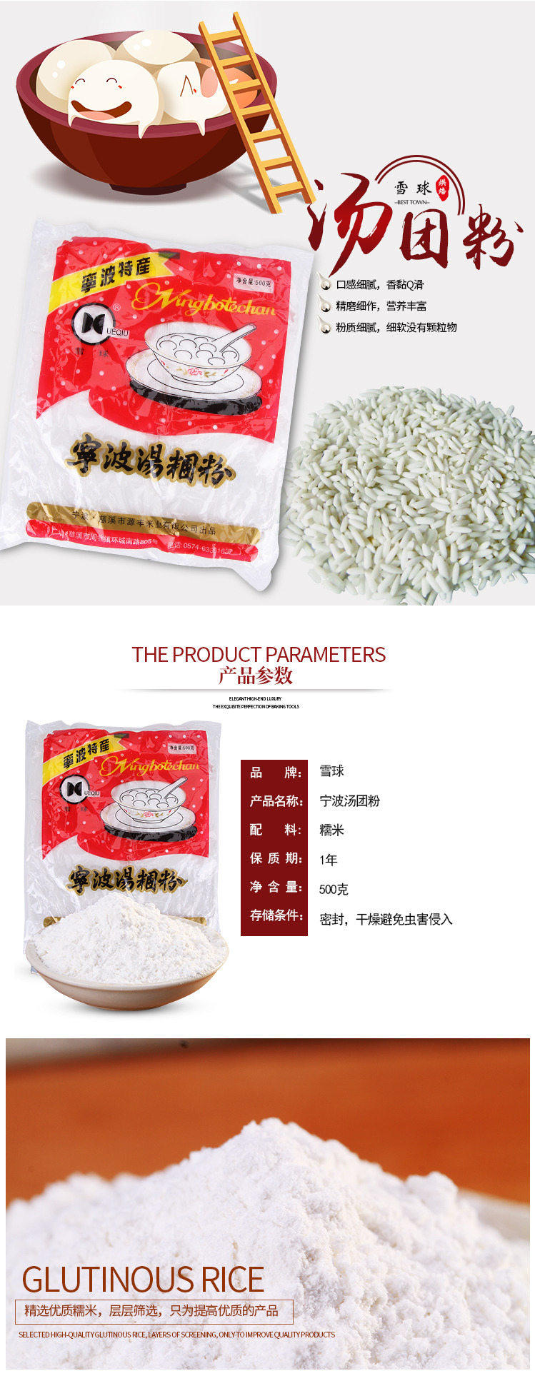 Купить 2 минус 3 юань 丨 клейкую рисовую муку воду из шлифования нинбо пельмени и белый порошок Xue mei niang Семейный конопляный шарик для шарика Коммерческий выпечка 500G