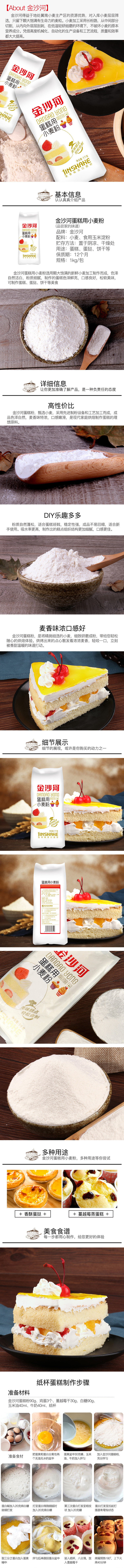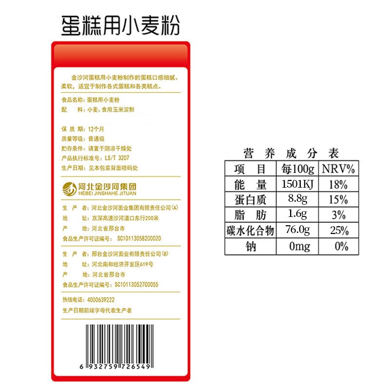 金沙河 Низкая глютеновая мука выпечка домашнего пирога порошкообразной порошковой пирог материал для выпечки сырья 1 кг*2