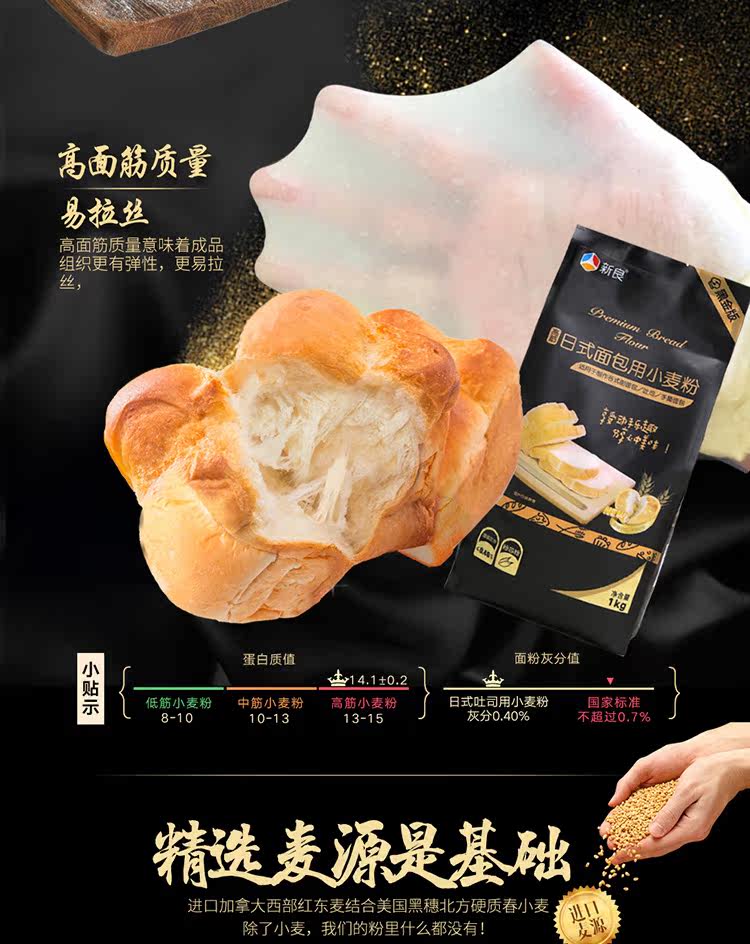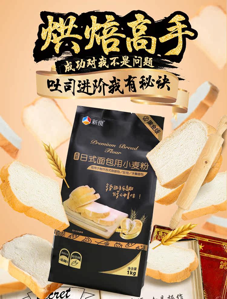新良 Черное золото, японский хлеб, пшеничная мука, мука с высоким содержанием глютена, тосты, пицца, хлебопечка, 1 кг