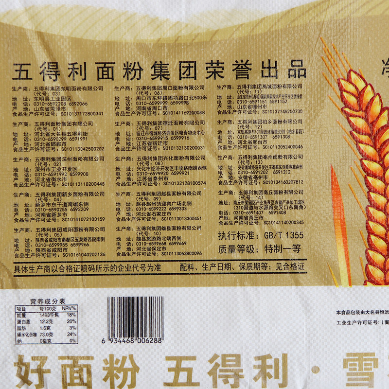 Wudin Eight -Star Constella Powder 50 фунтов муки высокого качества пшеничного порошка без добавления муки