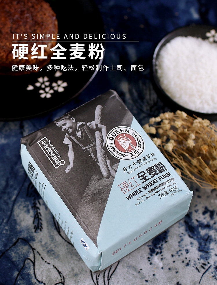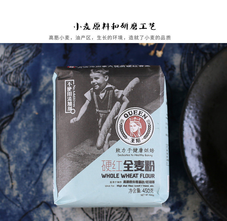 王后 Жесткая красная цельнозерновая мука, хлеб, порошок почвы с высоким содержанием пшеничной муки с пшеницей 450 г