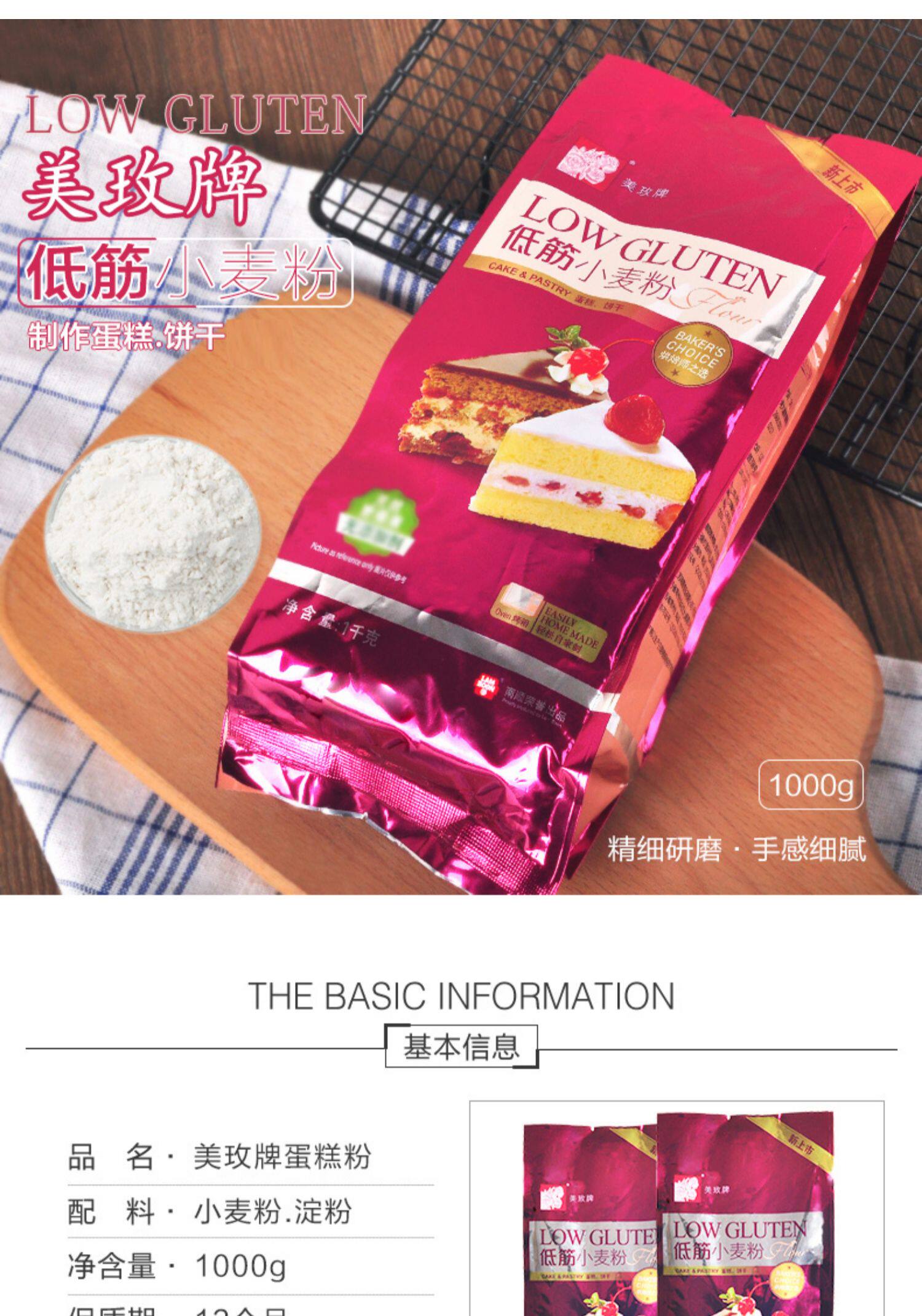 Meimei Brand Low -Gluten Powder 1 кг*3 запеченные детские низко -глютеновый порошок Дополнительный продукт Дополнительная еда детское домик торт с низким содержанием глютена