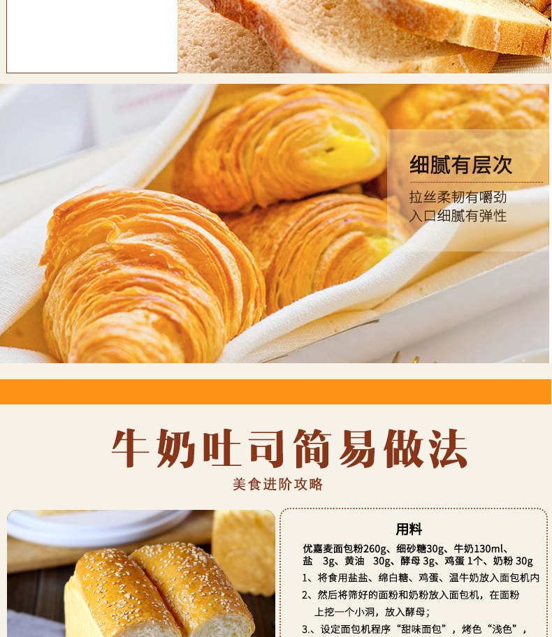 优嘉麦 Хлебная мука высотой 2,5 кг, глютенная мука, выпечка, домашний хлеб, предназначенная для жарки с высоким содержанием глютена, бездушная доставка.