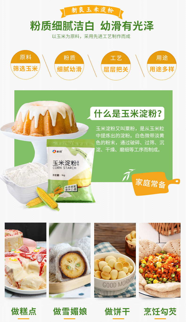 新良 Выпечка кукурузного крахмала большие сумки для орлиного просообразования сырой порошок, кукурузный пирог, хлеб 200 г*5 мешков