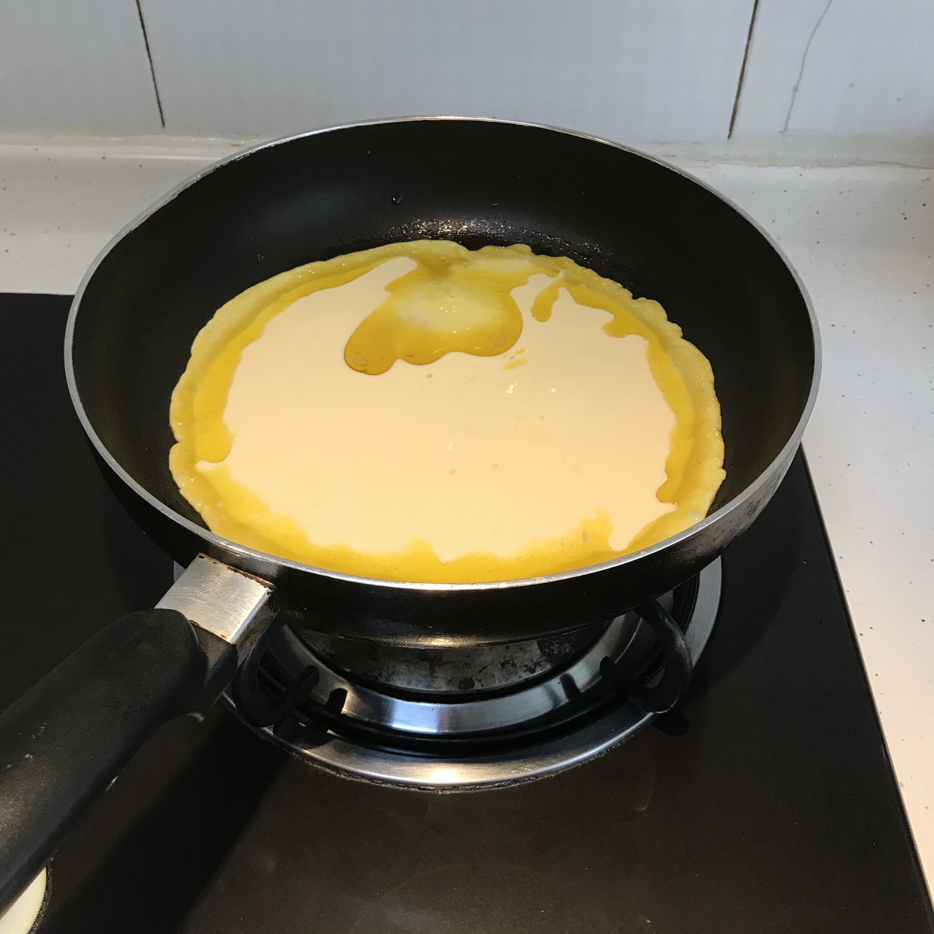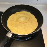 3. После того, как яичная жидкость внизу разрезана (слегка сгорев), вы можете перевернуть другую сторону в жар.