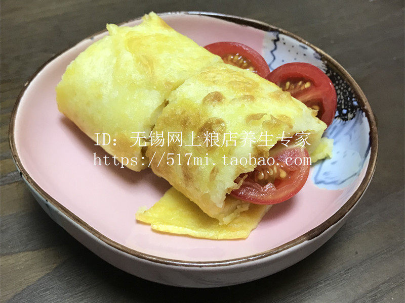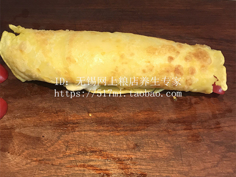 4. Подождите, пока обе стороны будут разрезать, вы можете положить фрукты, затем свернуть его, разрезать на небольшую часть, чтобы съесть его!