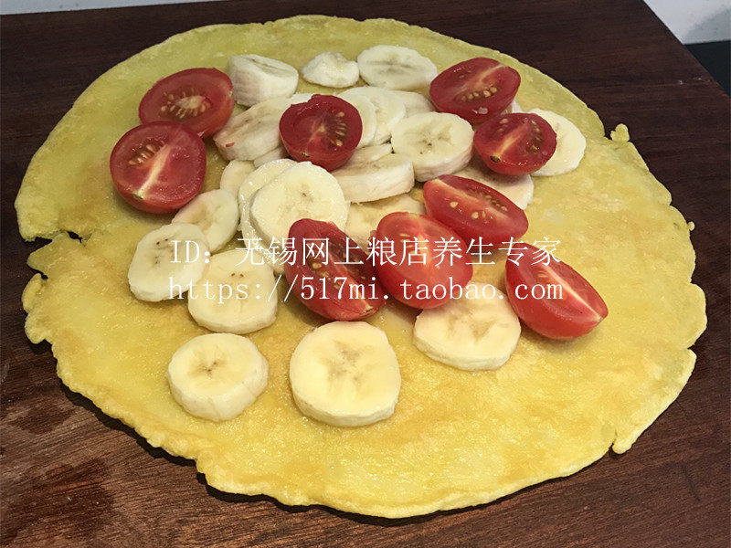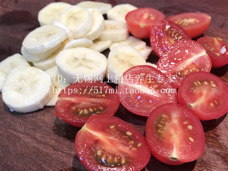 1. Приготовьте ингредиенты: бананы, помидоры, мука, яйца, рапсовое масло.Хорошо перемешайте муку и яйца, нарежьте кусочки банана и небольшие помидоры.
