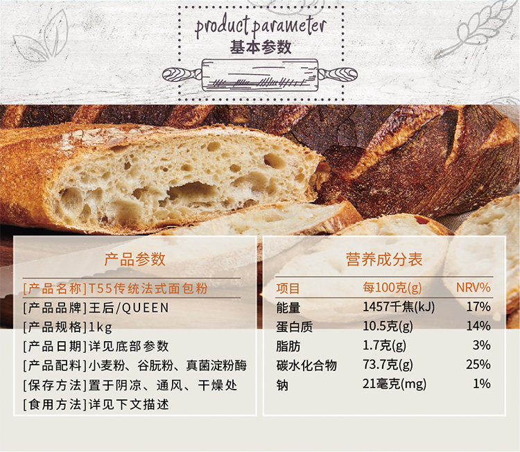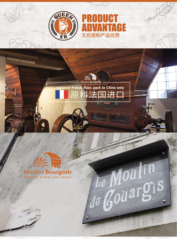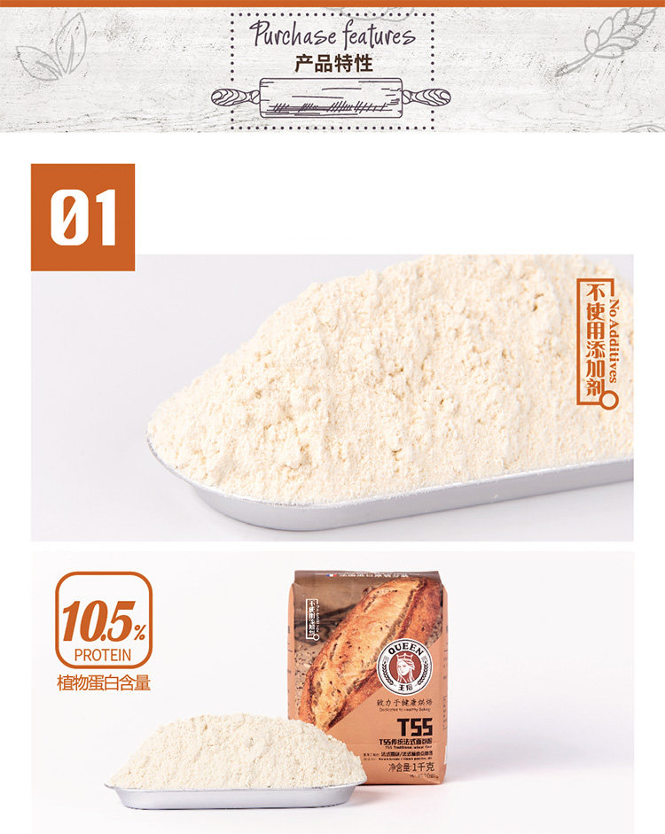 Queen T55 Традиционная французская мука мука плазменных закусок может хвалить порошок овечьего рога пшеница жареные сырья 1 кг