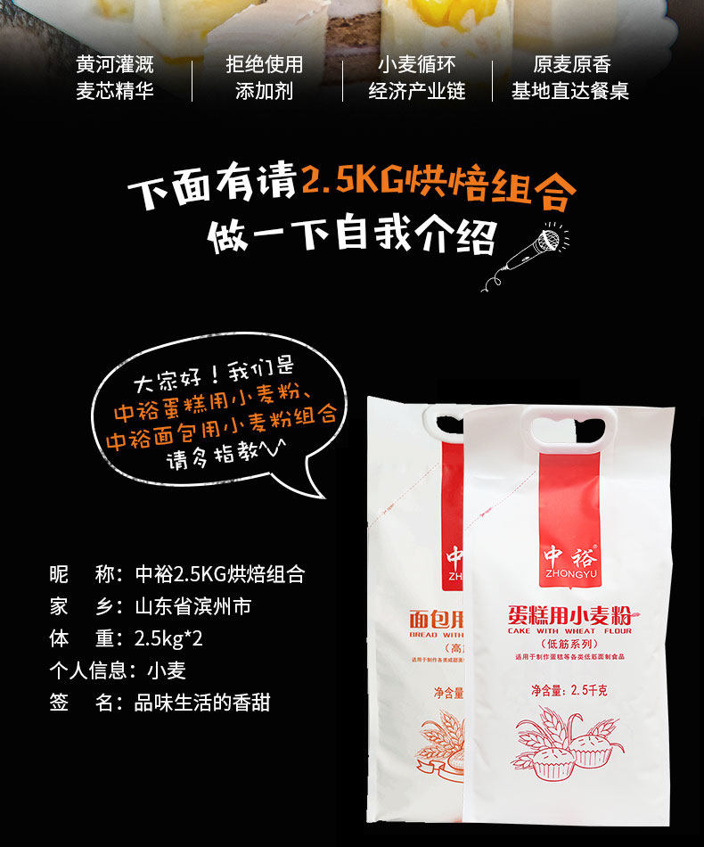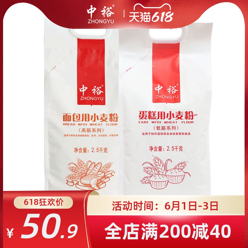 中裕 Торт порошковой хлеб мука 2,5 кг*2 обстановка выпечка высокая сухожилия с низкой полосой Shandong Powder