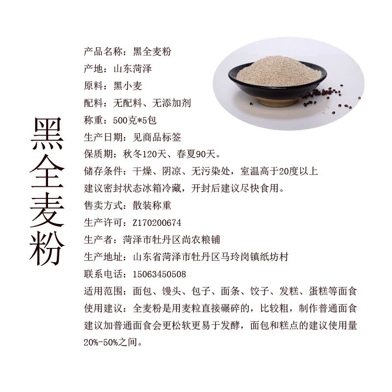 Фермерский дом в настоящее время измельчивает чистую черную и полную пшеничную муку, в общей сложности 2500 грамм. Для удобства использования 500 граммов 500 граммов
