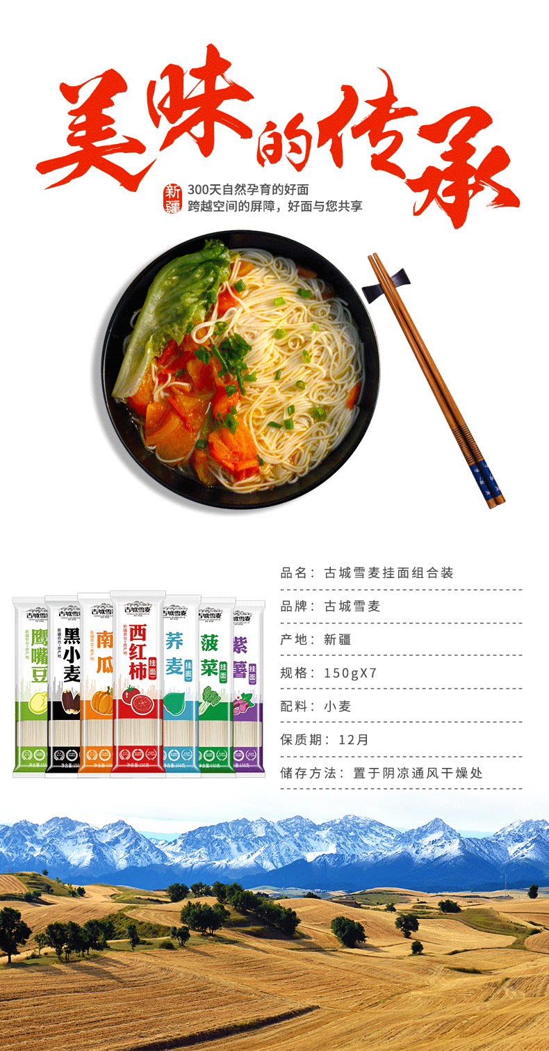 Синьцзян подвесной лапша Древний город Сноумай 7 ароматизированная лапша 150 г*7 упаковок из 7 видов ароматической суповой лапши Смешанная лапша для легкой еды