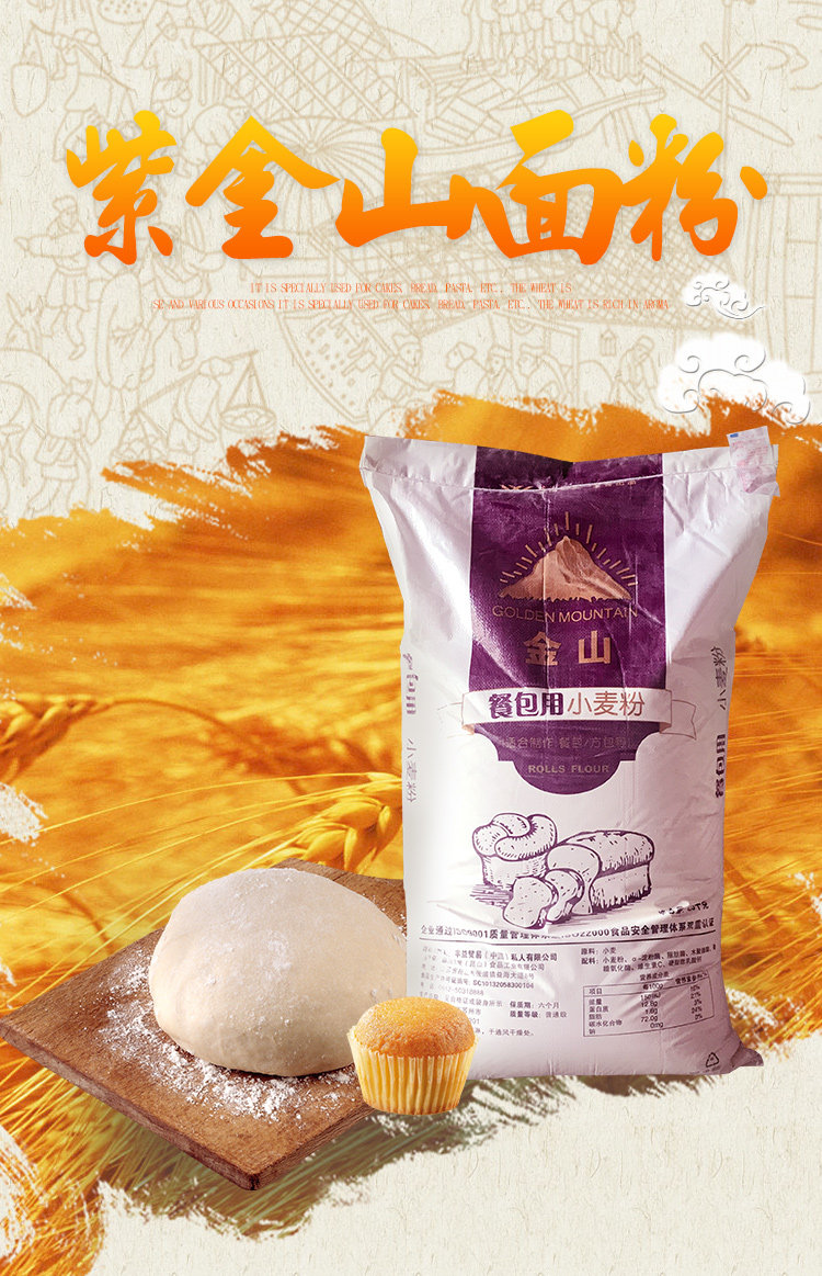 Yili keli jinshan еда сумка для еды 25 кг пшеничной муки 25 кг Zijinshan High -Gluten Toast Toast Hread для высокого глютенового порошка