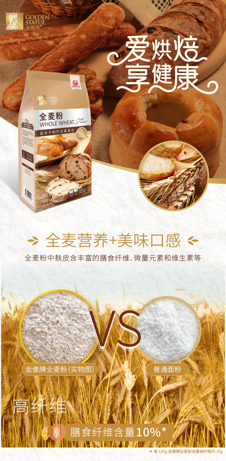 Золотая статуя -все -топлатная мука 1 кг домашняя установка Универсальная пшеничная хлебная мука содержит пшеничные отруби, пищевое сырье для выпечки волокна