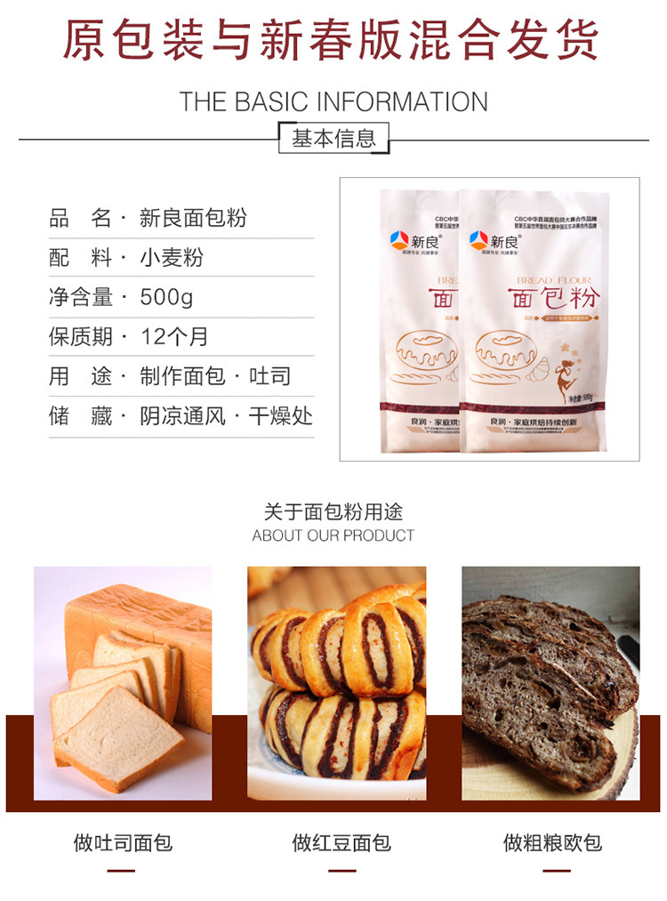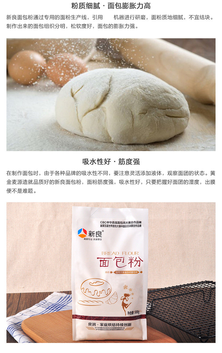 新良 Хлебная мука с высокой глютеновой мукой пшеничная мука 500G*2 упаковывать китайские кондитерские хлебные материалы для выпечки ингредиенты