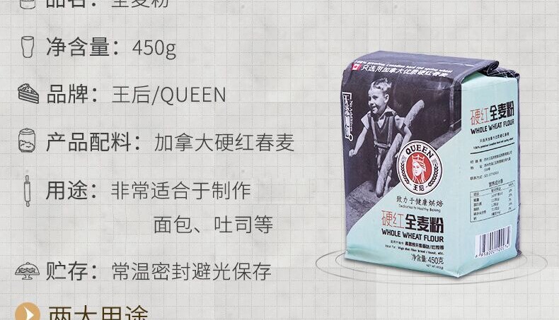 王后 Жесткая красная красная пшеничная мука 450G Перевора