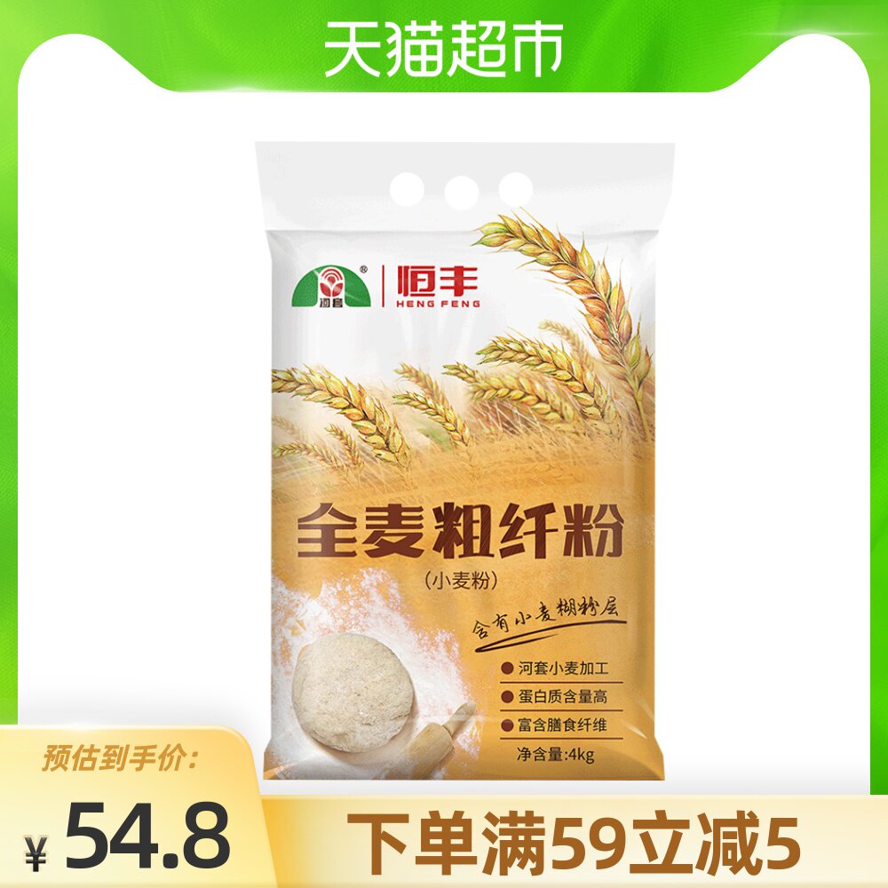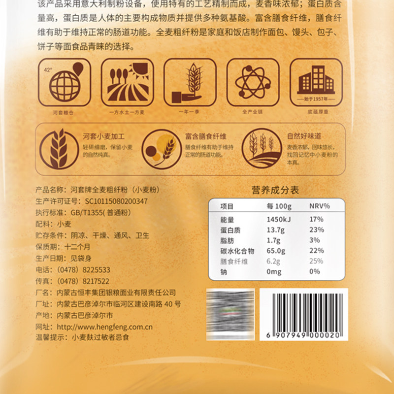 河套 Мука полная пшеница грубое волокно порошок 4 кг × 1 содержит пшеничные пшеничные порошок.