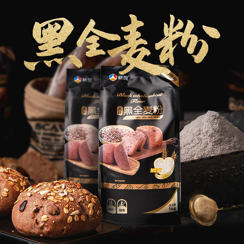 新良 Черная полная пшеничная мука 1 кг все -теат -мука содержит пшеничные отруби, ржаная порошка хлебная мука, выпечка пшеничная мука