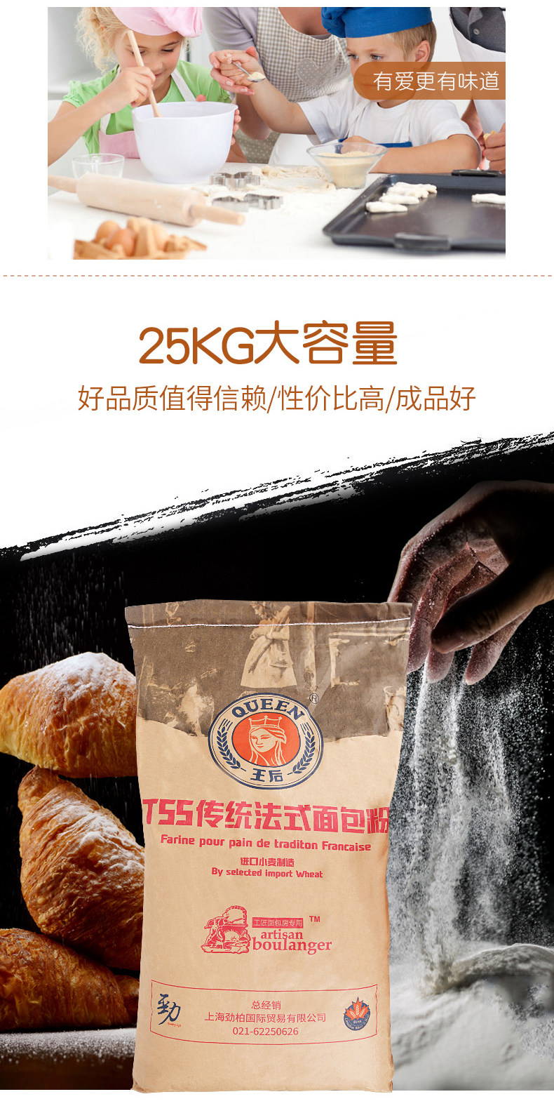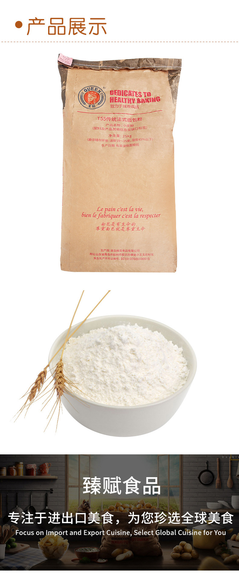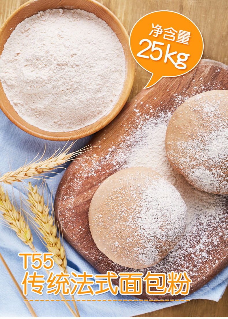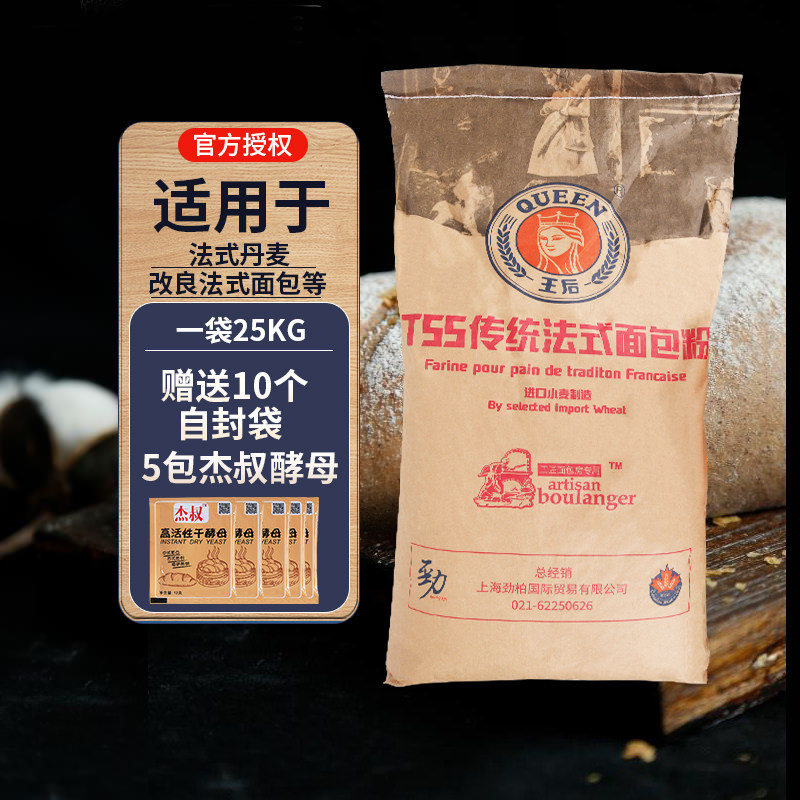 王后 T55 Традиционная французская хлебная мука 25 кг безе может похвалить овцеводную пшеничную муку Дом Коммерческий выпечка сырья