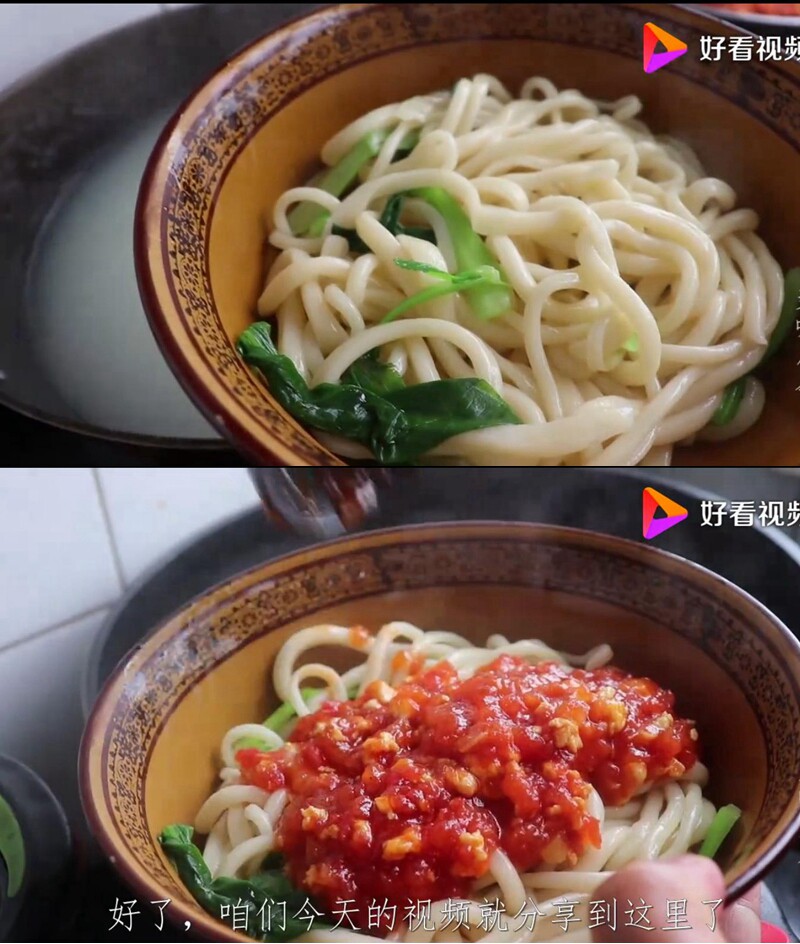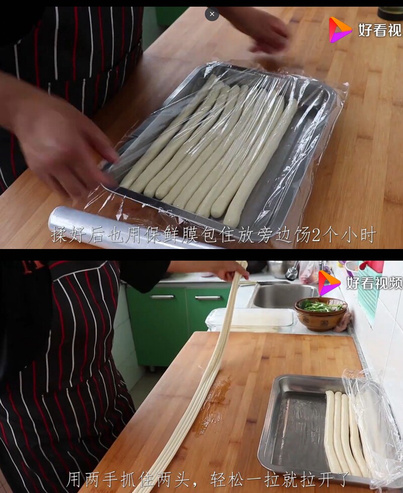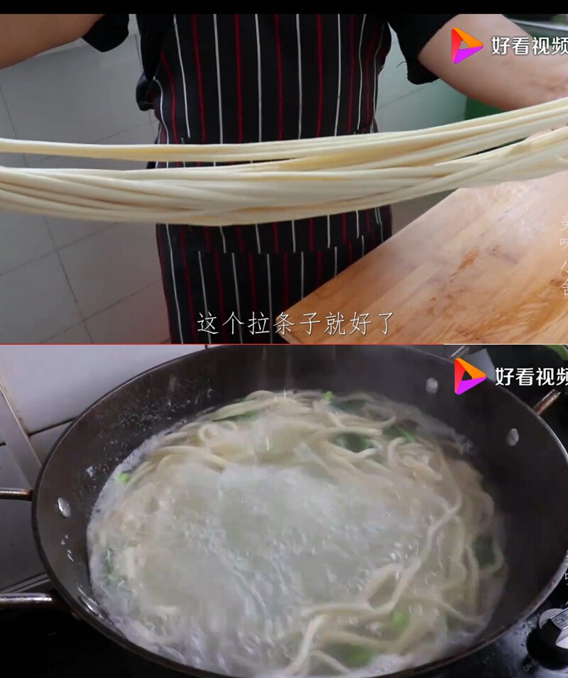 Во -первых, приготовьте большую миску с водой, добавьте немного соли внутрь, используйте эту воду и лапшу, сделайте лапшу и сделайте круглый шарик, нанесите чистоту масло и оберните пластиковую пленку.Через семь или восемь минут разрезать поверхность на полоски, а затем накройте полиэтиленовую пленку