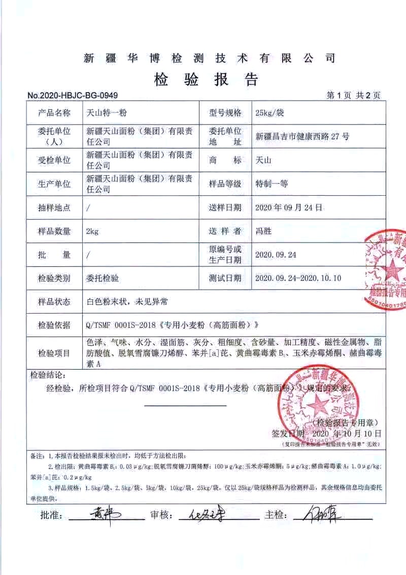 Мука Тяньшан обрабатывается с высоким качеством пшеницы Qitai.